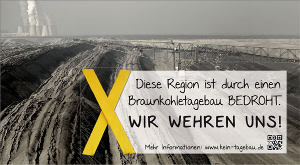 "Diese Region ist durch einen Braunkohletagebau BEDROHT - WIR WEHREN UNS!" - mit