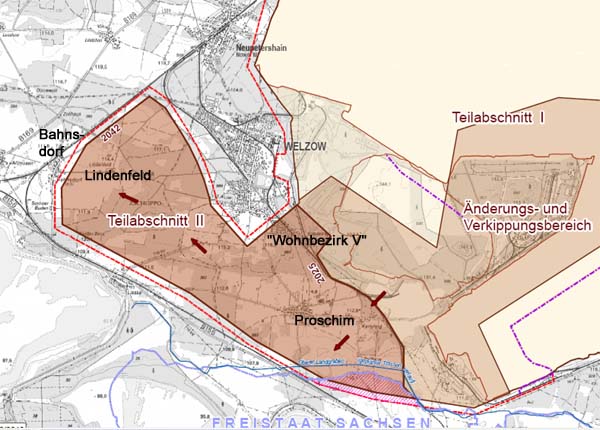 Befürchtungen der Welzower Bürger zusammen, deren Stadt bei Umsetzung des Planes zu einer Halbinsel im Tagebaugebiet würde. "Zwischen Wohnhäusern und Grubenkante wird ein Abstand von 150 Metern zugestanden. Während von Süden Lärm und Staub auf uns zu kämen, wissen wir nicht, ob die bereits umgewühlte Landschaft im Osten jemals vor Rutschungen sicher sein wird."